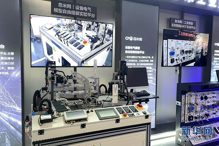 数字大屏实时显示了智慧工厂生产线上的情况。新华网 刘文静 摄 新华网重庆2月23日电(李华曾 刘文静)智慧工厂内,运料机器人正在有序作业。数字大屏上,生产场景被可视化再现,并能实时显示机器人工作状态、产品数量及合格率,生产效率得到显著提升。 “走进区域看发展·川渝奋楫谱新篇”网上主题宣传采访团来到重庆九龙坡区,走进重庆忽米网络科技有限公司(以下简称忽米科技),感受工业互联网给传统制造业带来的改变。 成立于2017年的忽米科技,是国家工信部发布的中西部首个国家级跨行业跨领域工业互联网平台、首批国家级工业互联网平台试点示范项目。公司拥有忽米H-IIP工业互联网平台、忽米标识解析、忽米数字孪生、视觉检测、5G边缘计算等多个核心平台及应用技术,为汽摩、交通、电子信息、医疗器械、装备制造、食品加工等10大行业和供应链、生产制造、仓储物流等9大领域提供大数据智能化平台解决方案。 什么是工业互联网平台?忽米科技CEO巩书凯解释道:“通俗地来说,就是通过开放的通信网络平台,把设备、生产线、员工、工厂、仓库、供应商、产品和用户紧密地连接起来,共享工业生产全流程的各种要素资源,使其数字化、网络化、自动化、智能化,从而实现效率提升和成本降低。” 以宗申动力摩托车发动机总装厂为例,此前工厂处于车间“信息孤岛”状态,车间管理信息不透明,设备异常检测处理不及时,生产工艺落后。在忽米为其建设数字孪生工厂之后,自动纠错能力提升约10.6倍,作业自动化率增长约10.1倍,管理协同人员减少约42.5%,人均产出提升约145.5%。